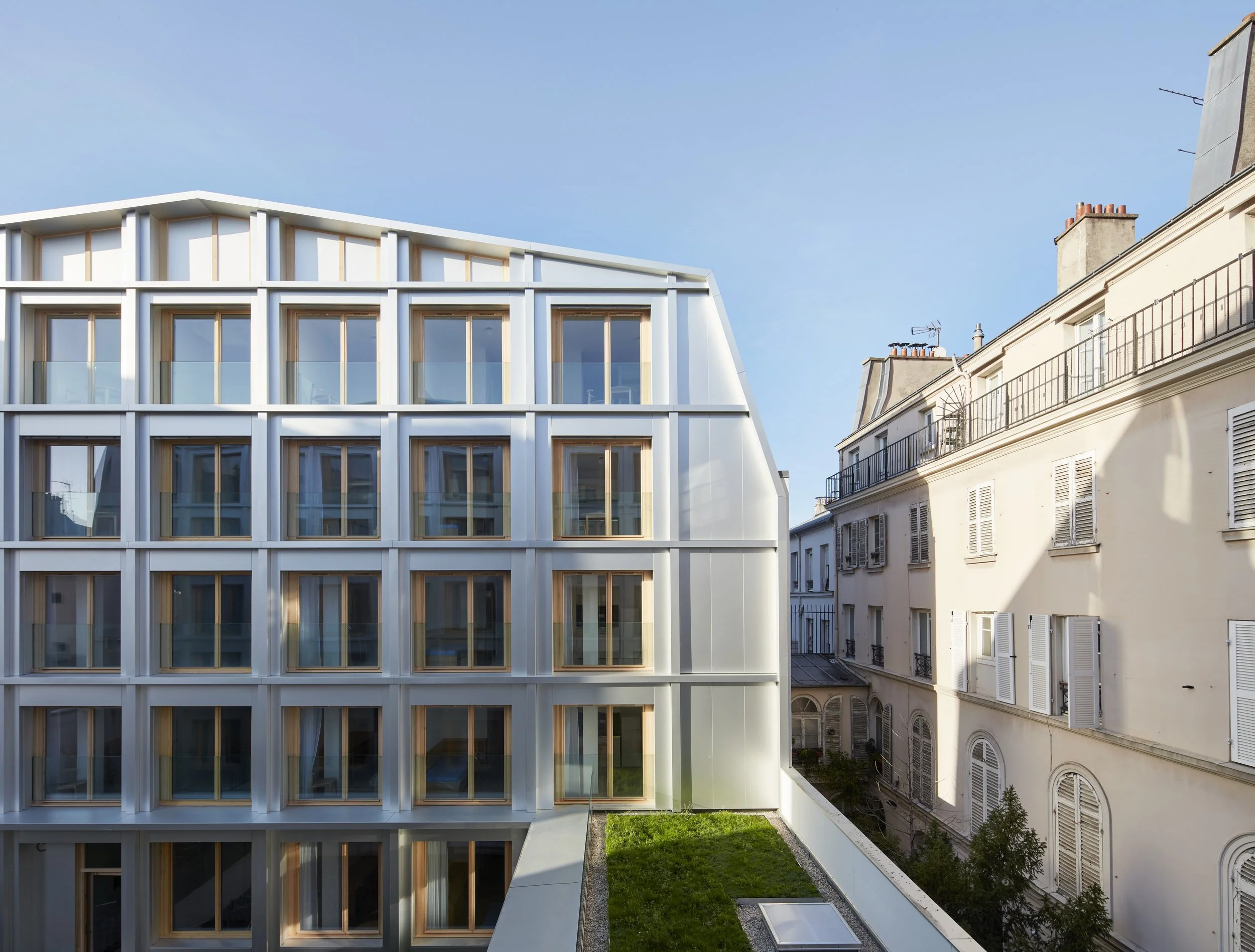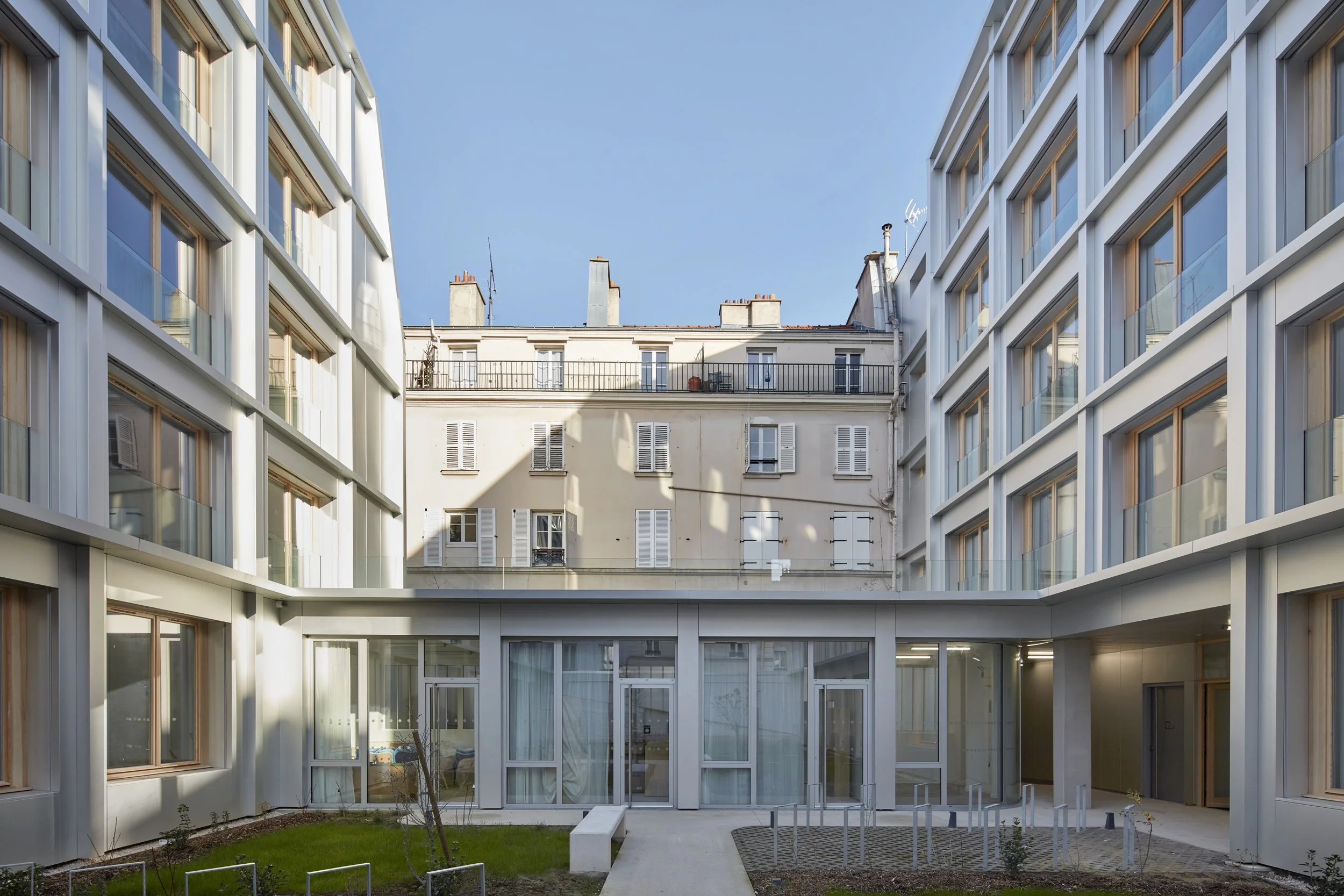 2.Insérer le projet dans son contexte grâce à de nouvelles percées visuelles profondes Nord/Sud dans une parcelle qui enclavait tout un coeur d’îlot. Cela offre aux avoisinants des vues libérées et profondes.